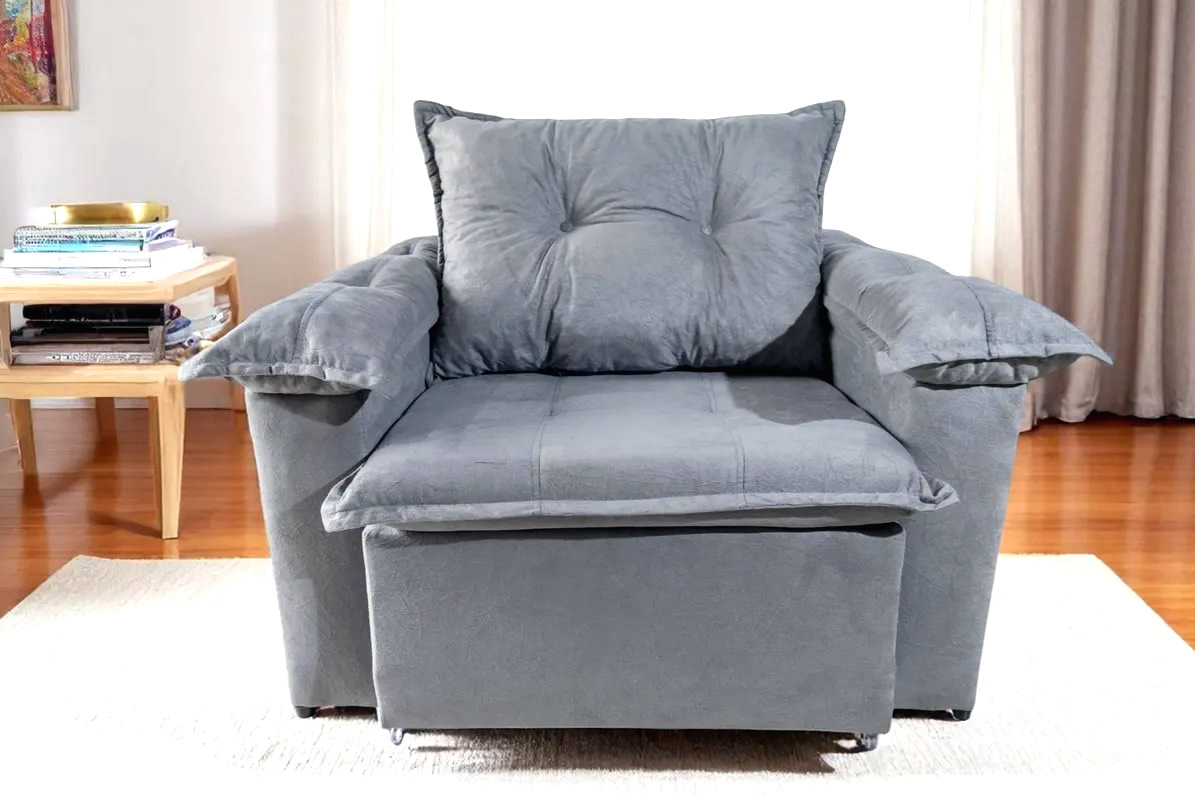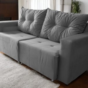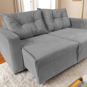 Sofá Retrátil 1,40 m Cinza 2 lugares Suede Texas
