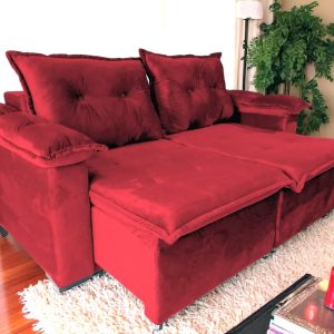 Sofá Retrátil Vermelho Braço Almofadado 1,40 m Barcelona