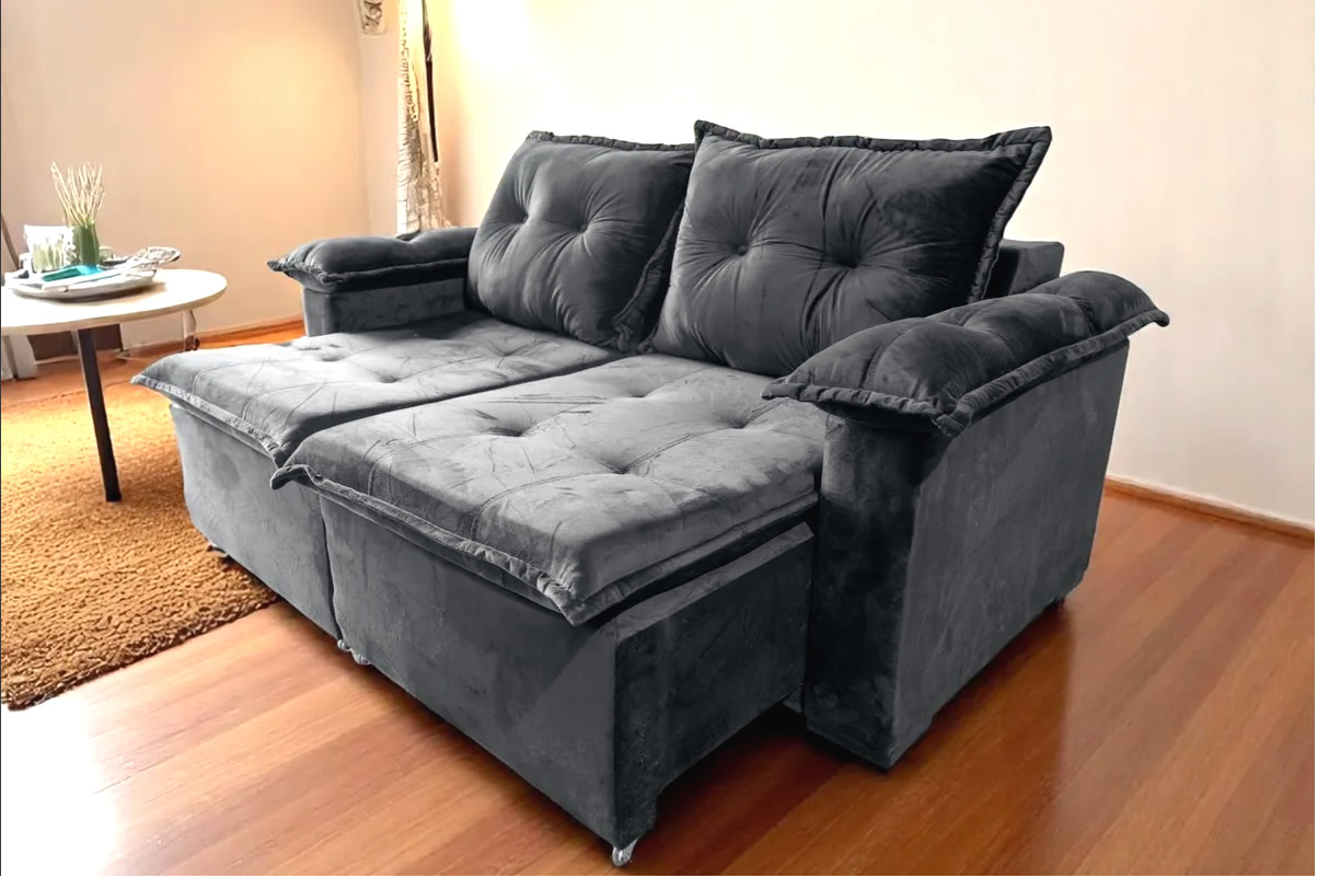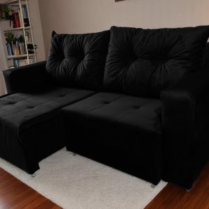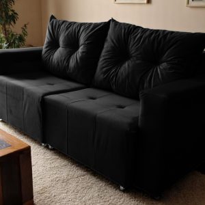Sofá Retrátil 1,40 m Preto 2 lugares Suede Texas