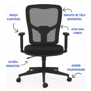 Cadeira Escritório Ergonômica Secretária Back System One Mesh Encosto Tela