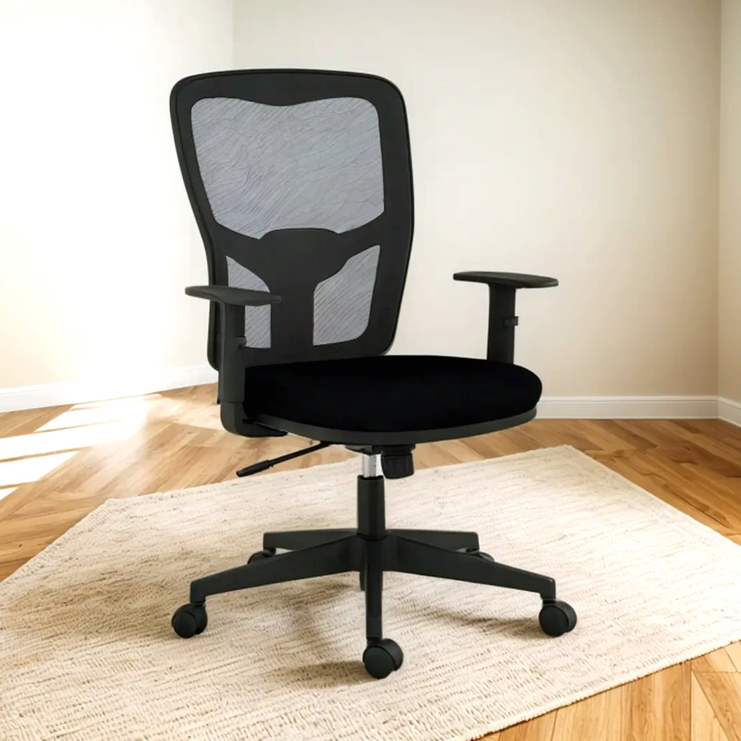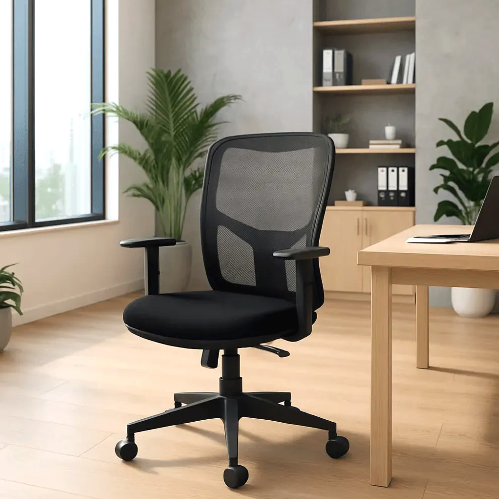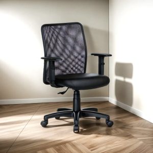 Com apoio lombar ajustável, esta cadeira adapta-se à curvatura natural da coluna, promovendo saúde postural e prevenindo dores nas costas. Os braços ergonômicos fornecem suporte eficaz para os antebraços, e a base giratória com rodízios oferece mobilidade suave em qualquer ambiente de trabalho.