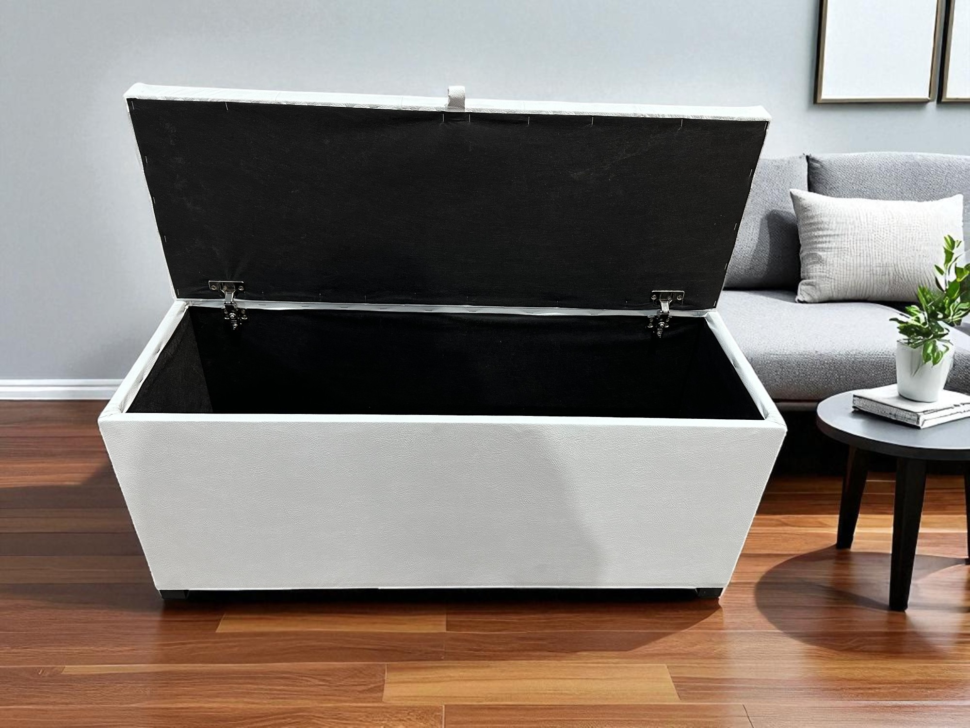 Transforme o ambiente da sua casa com este elegante puff baú, ideal para sala, quarto ou escritório. Produzido com estrutura reforçada em MDF, conta com revestimento em tecido suede macio ao toque e acabamento sofisticado com detalhes na tampa.