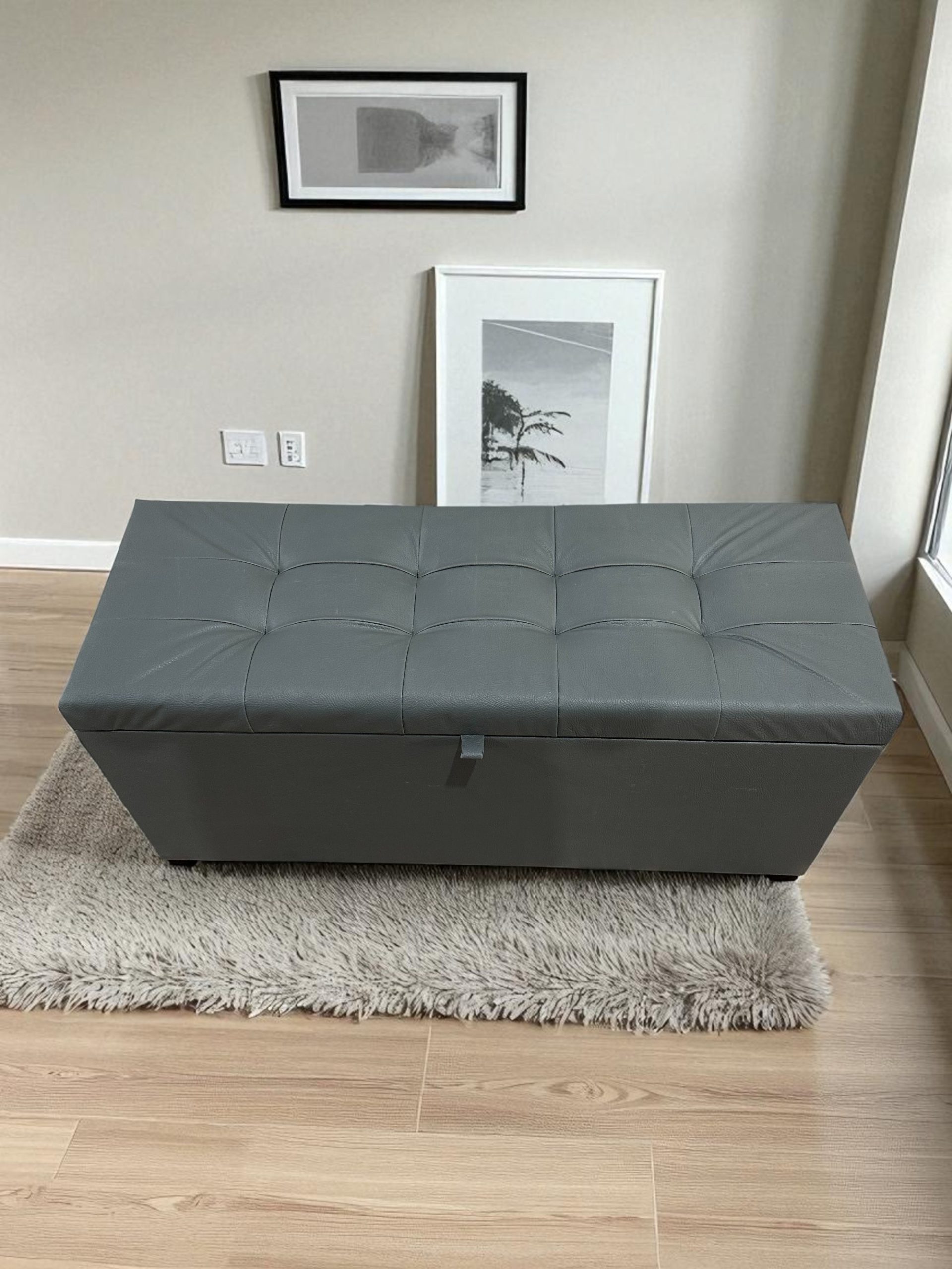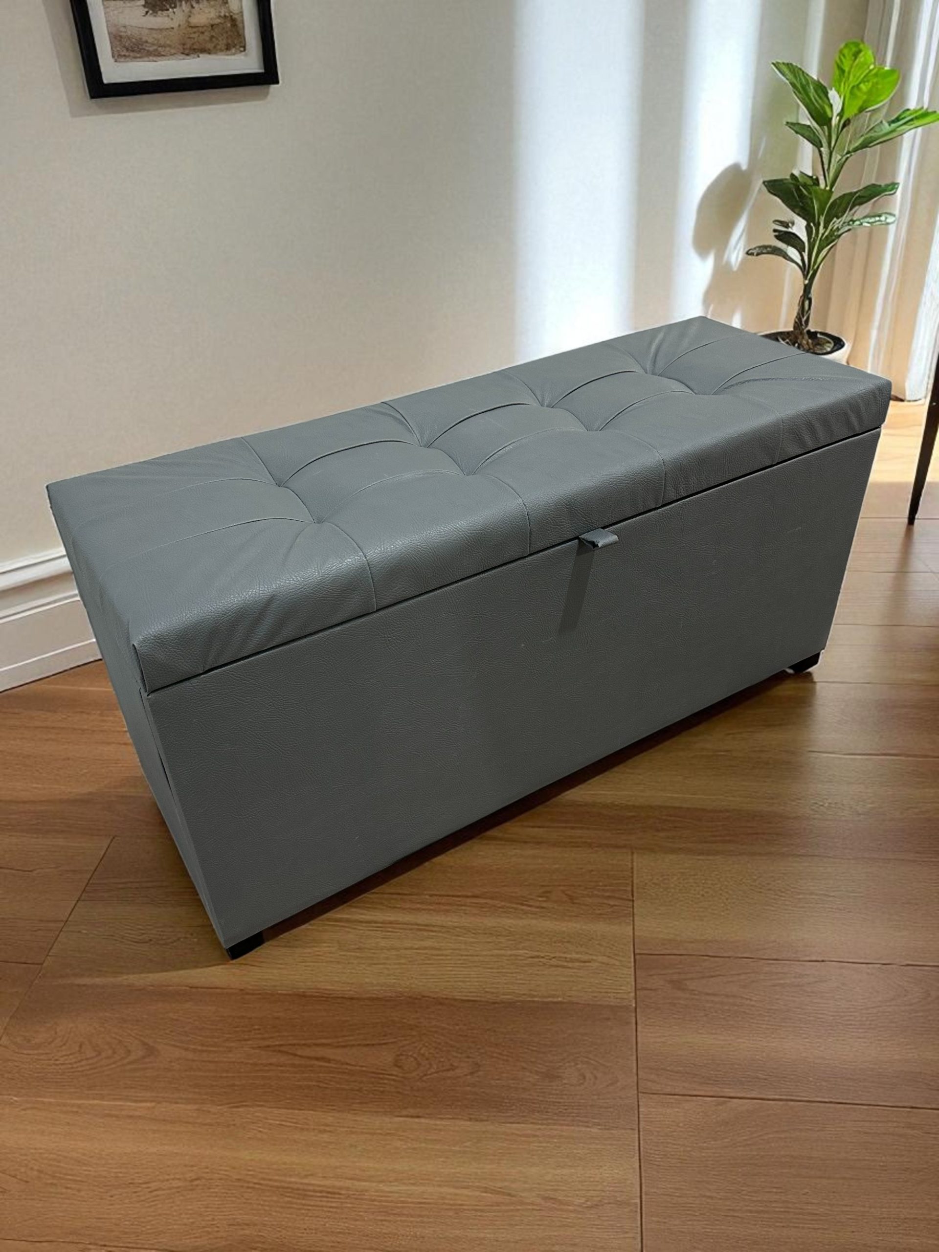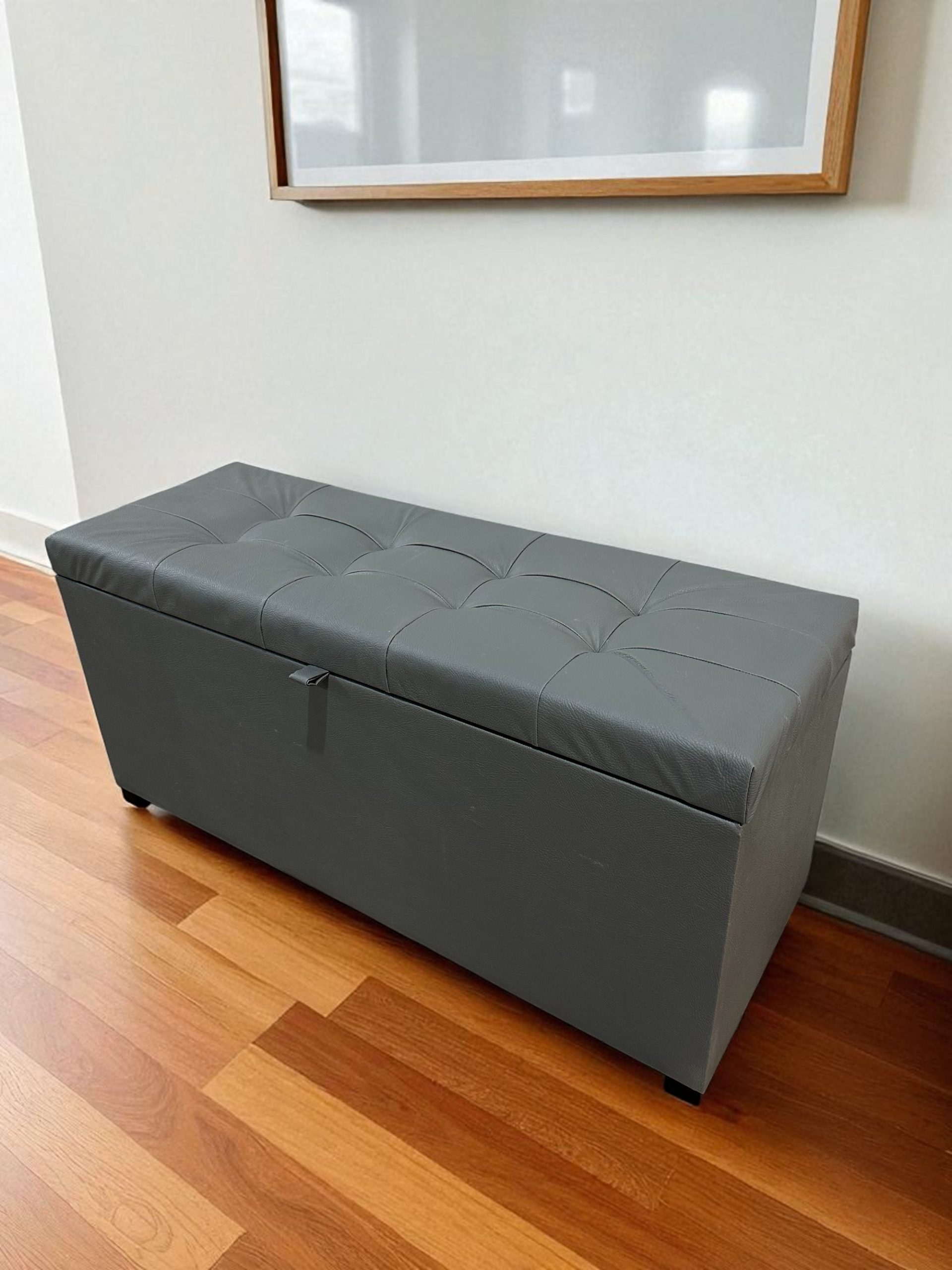 Recamier Puff Baú Decorativo 1 Metro – Cinza Corino