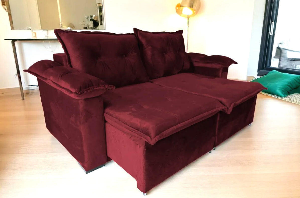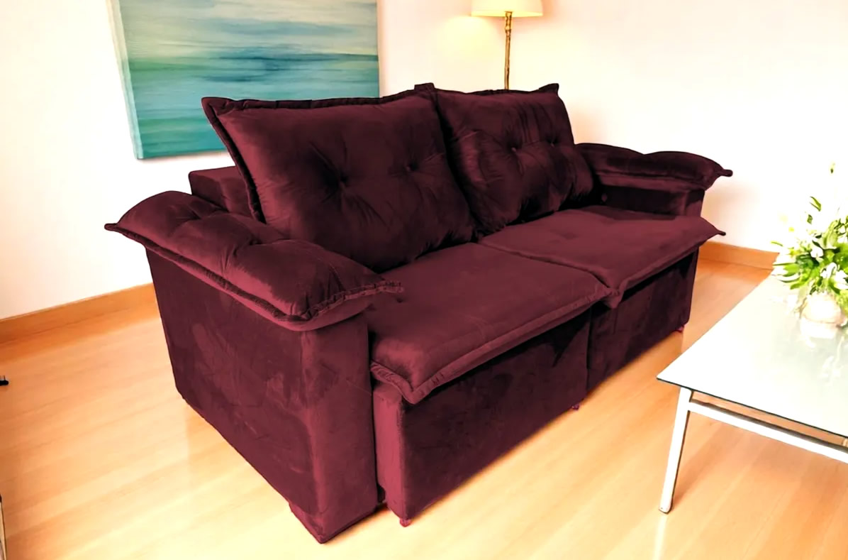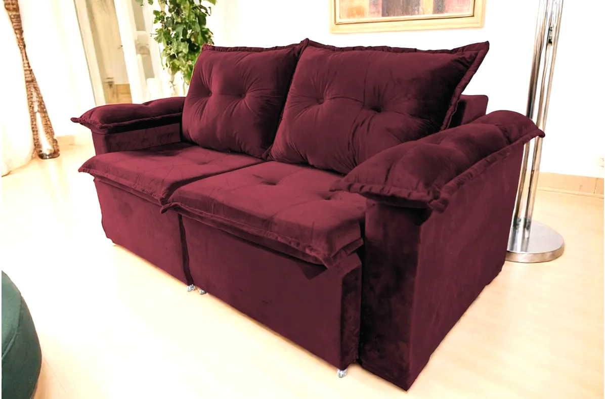 Sofá Retrátil Bordo Braço Almofadado 1,40 m Barcelona